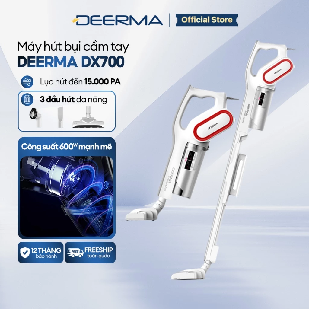 Nếu bạn ưu tiên sự bền bỉ và lực hút mạnh thì không cái tên nào qua mặt được Deerma DX700. Đây là dòng máy có dây, giúp duy trì công suất ổn định mà không lo hết pin giữa chừng.
